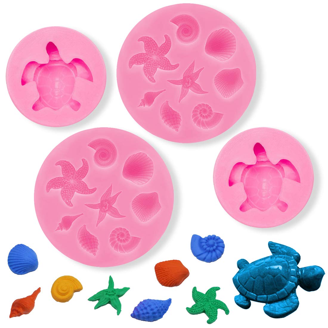 in BackformenSilikonform mit MeeresschildkröteSüßigkeiten, Fondant, Meeres-Themen, handgefertigt, Backwerkzeug, Muffin, Brot, Dekoration, 4 Stück