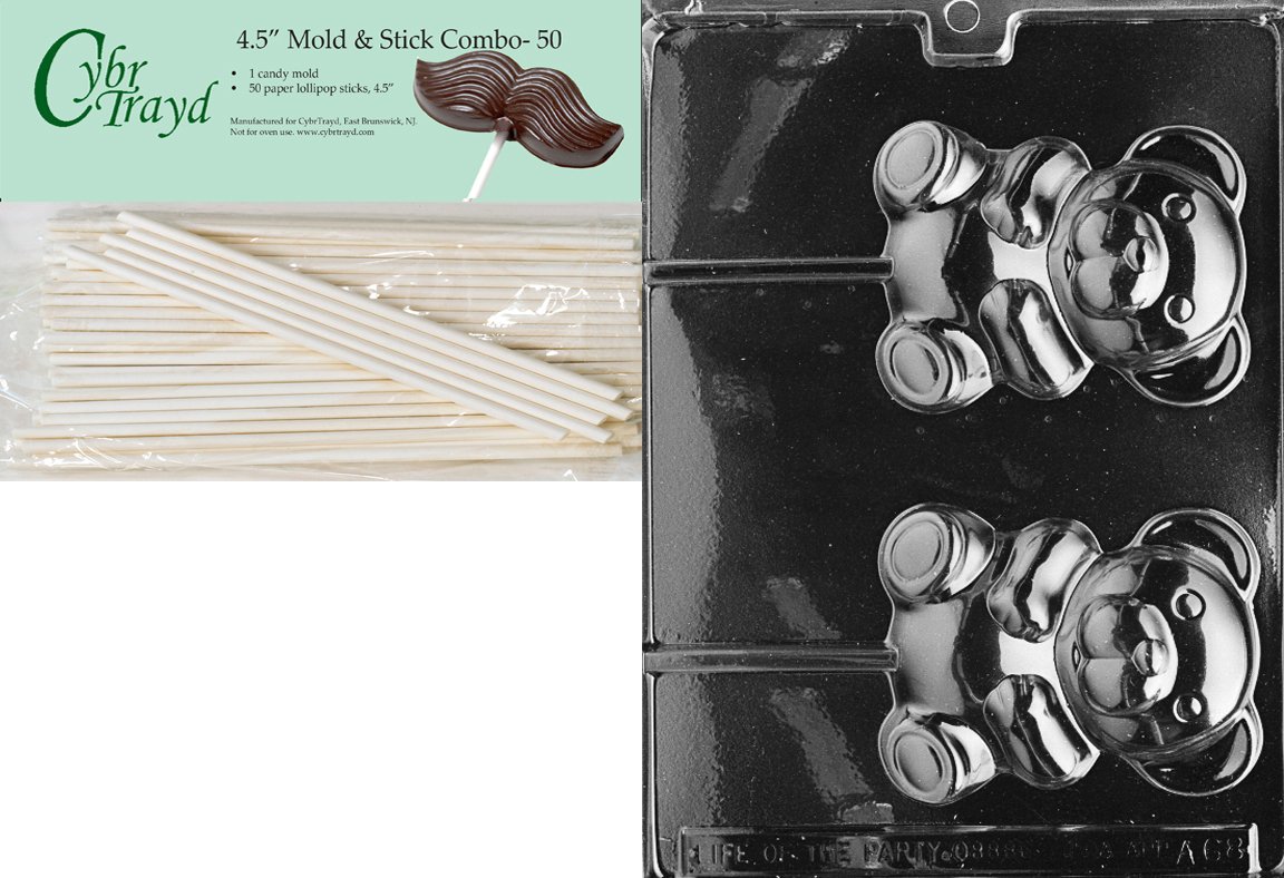 Cybrtrayd 45St50-A068 Große Teddy Lolly A061 Animal Schokoladenform mit 50 11,4 cm Lollipop-Sticks