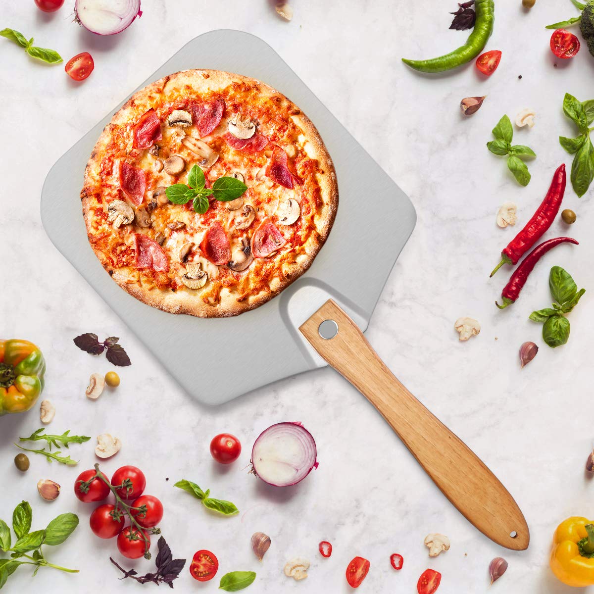 Lirradight PizzaschaufelAluminium Metall Pizzaschaufel mit klappbarem Holzgriff – einfach zu verstauen, tolles Geschenk für hausgemachte Pizza-Liebhaber, 30,5 x 35,6 cm