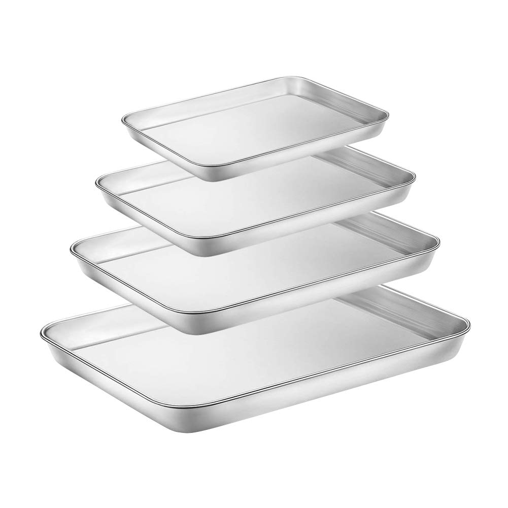 in Backofen-ZubehörBackblech-Set aus 4 Edelstahl-TablettenKeksblech, Toaster, Ofenform, 4 Sets rechteckig, rostfrei und weniger klebend, ungiftig und hitzebeständig, Spiegel-Finish und leicht zu reinigen, spülmaschinenfest, 4 Stück
