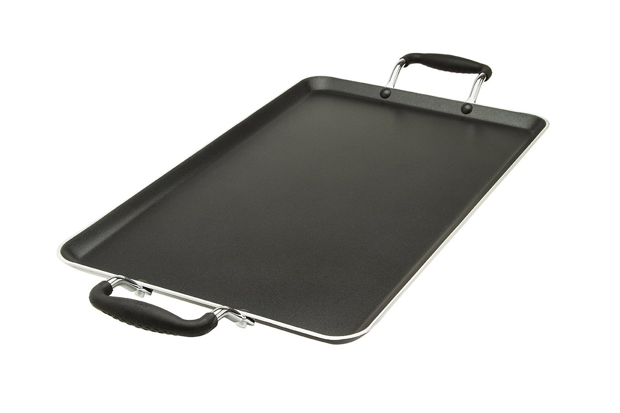Ecolution EABK-3218 Non-Stick Double Burner Griddle 12” x 18”Dishwasher Safe, Silicone Handles, Specialty Cookware for Family, Griddle-12 x 18 Inches