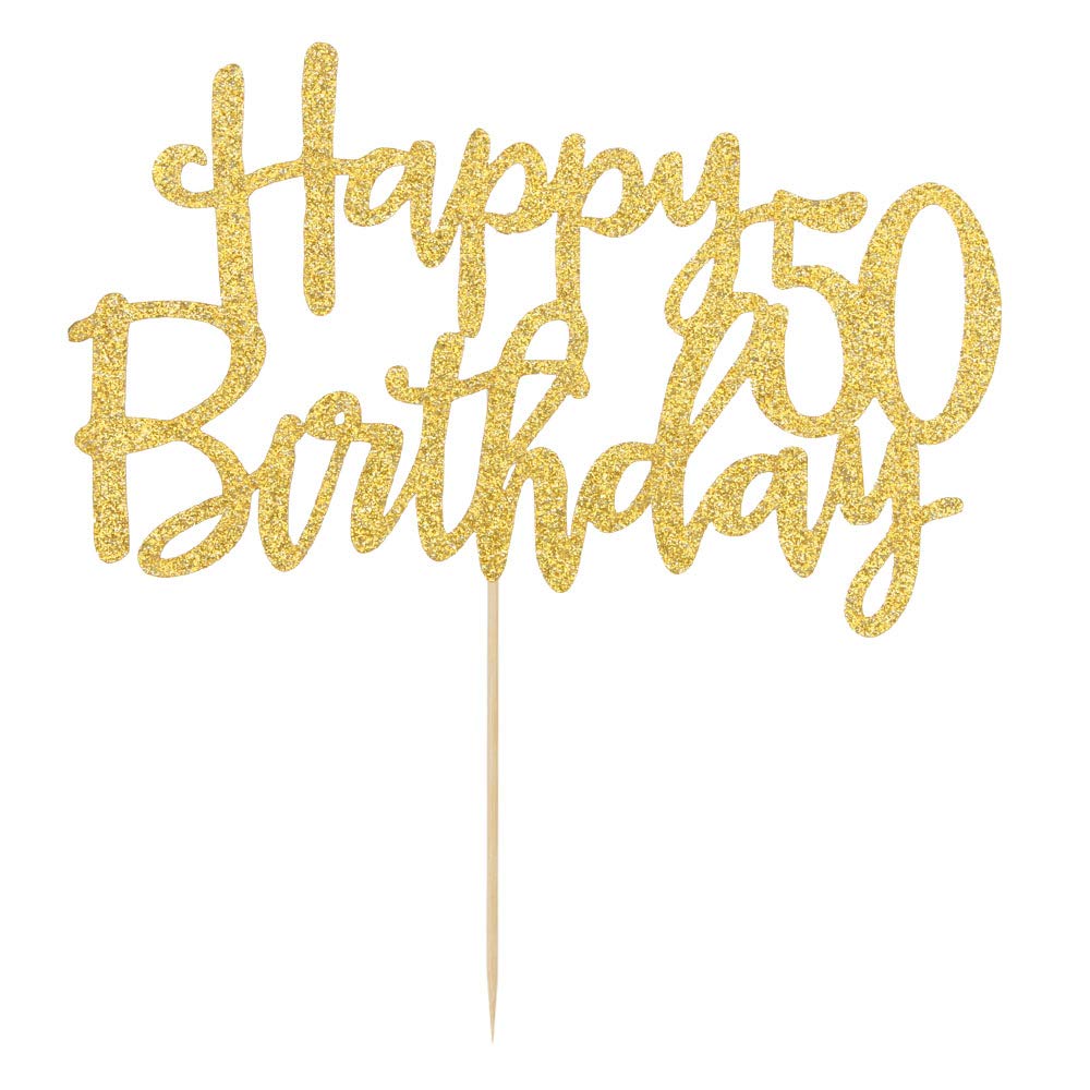 in BackzubehörKuchendekoration zum 50. Geburtstagdoppelseitig, goldfarbener Glitzer, Hello 50, Cheers to 50, 50 & Fabulous, Party-Dekoration