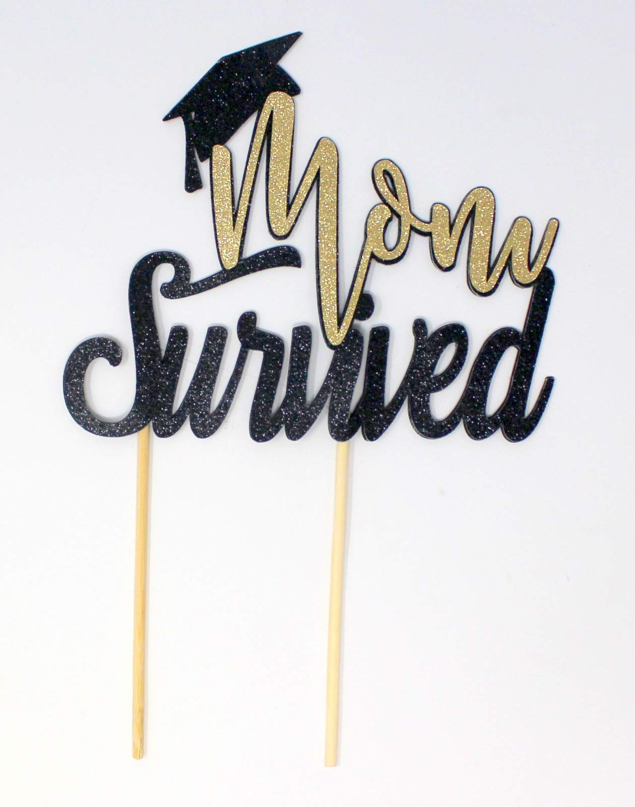 in BackzubehörAll About Details Mom Survived-Grad-Kuchen1 Stück, Glitzer-Aufsatz (schwarz & gold), 15,2 x 22,9 cm