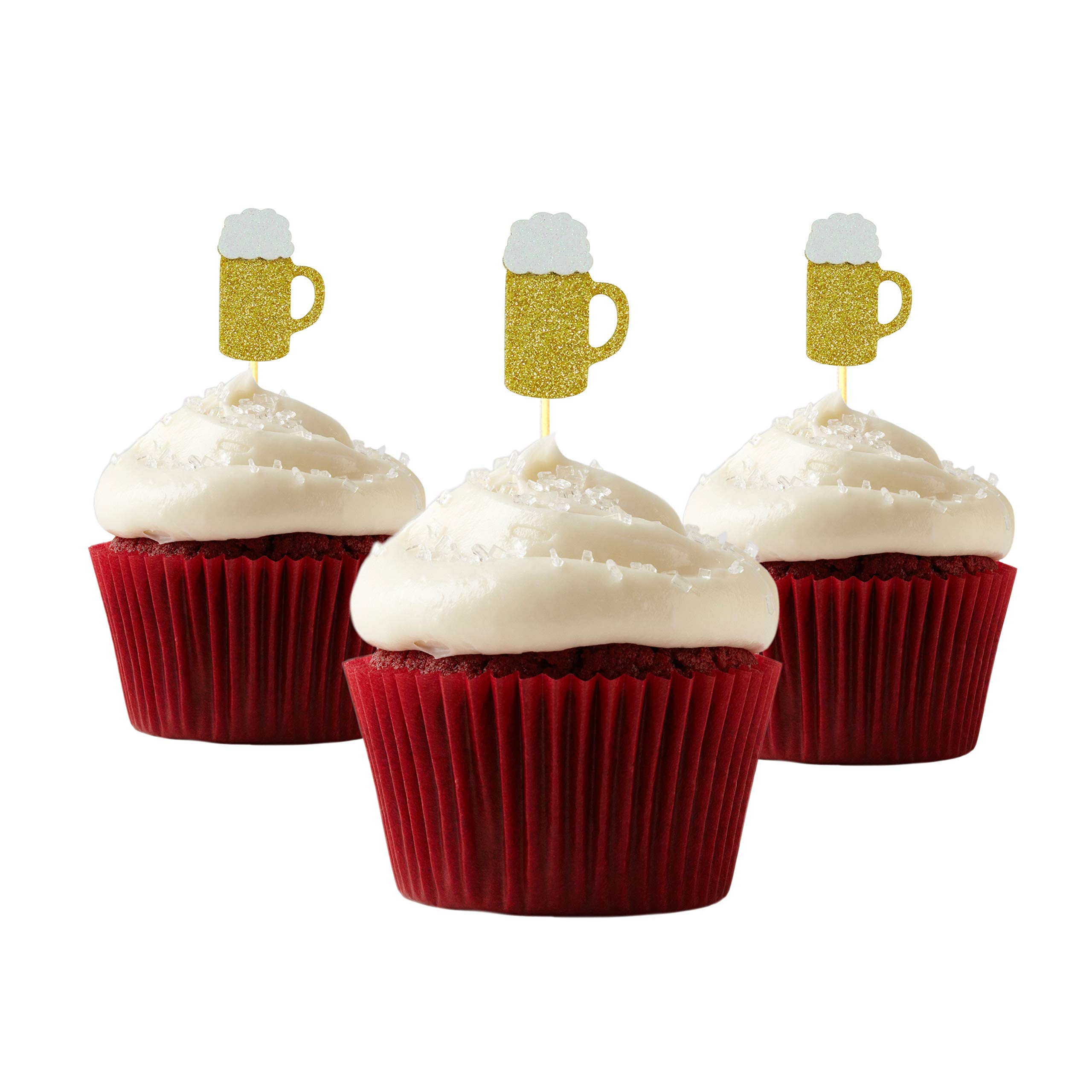 in BackzubehörBierkrugCupcake-Aufsätze, 12 Stück pro Packung, Bachelorette Babyparty, Hochzeit, Abschluss, Geburtstag, Hawaii, Party, Dekoration, Zubehör, Glitzer, Schaumstoff