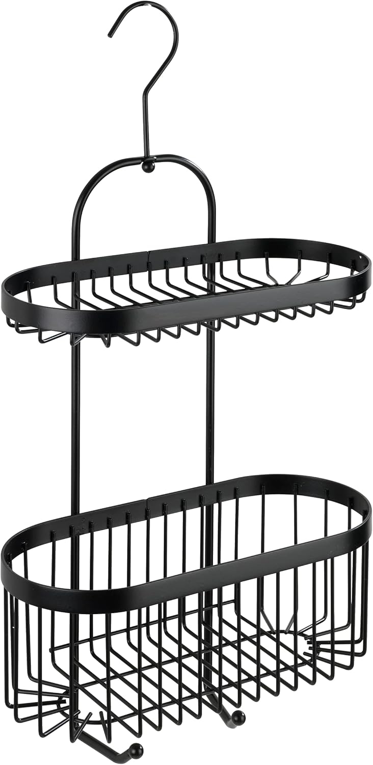 Moderner Ablagekorb für die Dusche mit beweglichem Haken für einfaches Aufhängen an Duschwand, Duschstange, Armatur Hochwertiger Rostschutz dank innovativer, schwarzer Spezial-Beschichtung, aus robustem Stahl Maße (B x H x T): 26,5 x 47 x 12,5 cm