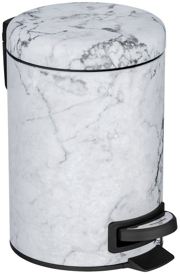 Der Badkorb ONYX von WENKO ist ein eleganter Mülleimer mit einem Fassungsvermögen von 3 Litern. Mit seinen kompakten Abmessungen von 22,5 cm x 17 cm x 25 cm passt er ideal in Küche, Bad oder Gäste-WC. Der aufklappbare Deckel sorgt für Hygiene und diskrete Abfallentsorgung. Hergestellt aus hochwertigem Edelstahl und Kunststoff, überzeugt er durch seine Langlebigkeit und ansprechende Marmor-Optik. **Highlights** - Aufklappbarer ONYX-Deckel für Hygiene und Sauberkeit - Kompakte Maße für vielseitige Einsatzmöglichkeiten - Hochwertige Materialien für Langlebigkeit - Tretfunktion für komfortable Bedienung - Herausnehmbarer Innensohlenbehälter mit Beutelhalter **Produkteigenschaften** - Produktmaße: 22,5 cm x 17 cm x 25 cm - Fassungsvermögen: 3 Liter - Farbe: Marmor, Weiß, Grau - Material: Edelstahl und Kunststoff - Leicht zu reinigen und zu pflegen **Lieferumfang** - 1 x WENKO Kosmetik Treteimer ONYX, 3 Liter