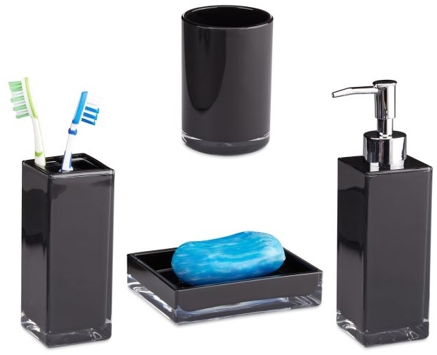 - Das moderne Badaccessoires Set aus Kunststoff bringt Einklang ins Badezimmer.