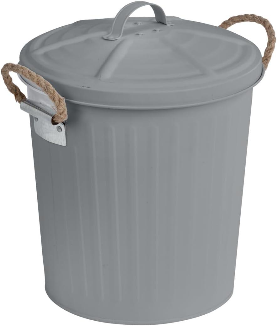 Der WENKO Kosmetikeimer Gara in Grau ist ein dekorativer Eimer aus lackiertem Stahl mit einer mattierten Oberfläche. Mit einem Fassungsvermögen von 6 Litern und zwei geflochtenen Henkeln ist er ideal für das Badezimmer, Büro oder als stilvolle Aufbewahrungslösung. Der abnehmbare Deckel sorgt für eine diskrete Entsorgung von Abfällen und passt perfekt in eine Einrichtung im Industrial Design. **Highlights** - Retro-Design im Badezimmer - Geflochtene Henkel für einfachen Transport - Abnehmbarer Deckel mit Griff - Aus lackiertem Stahl mit mattierter Oberfläche - Ideal für Bad oder Büro **Produkteigenschaften** - Maße (B x H x T): 24 x 28,5 x 23 cm - Fassungsvermögen: 6 Liter - Gewicht: 0,61 kg - Farbe: Grau - Material: Metall **Lieferumfang** - 1 x WENKO Kosmetikeimer Gara, 6 Liter, mattiert, Abfalleimer Retro-Design, geflochtene Henkel (Farbe: Grau)