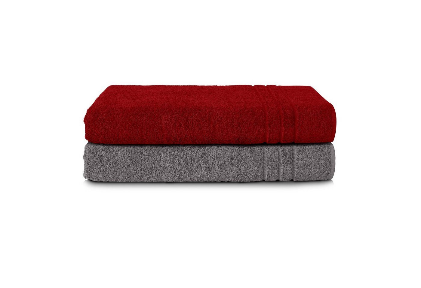 in BadetücherKomfortec 2er Saunatuch Set 80x200 cm aus 100% BaumwolleXXL-Saunatücher, Sauna Handtuch, Weich, Groß, Frottee, Schnelltrocknend, Anhtrazit Grau/Aurorarot