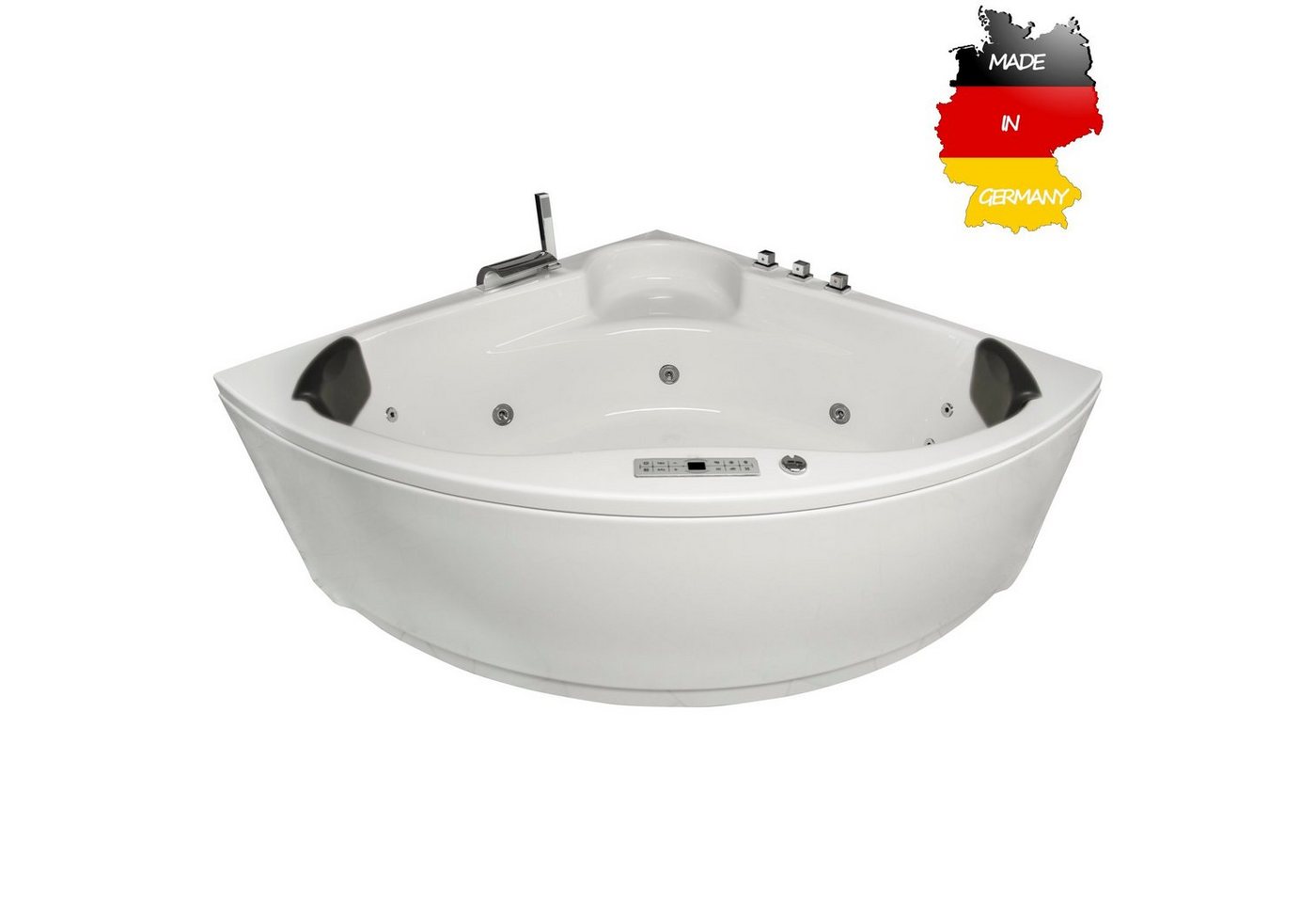 in BadewannenBasera® Whirlpool-Badewanne CLASSIC Indoor Eck-Whirlpool Badewanne Futuna 140 x 140 cm(Komplett-Set), mit 21 Massagedüsen, Wasserfall, LED, Touchpanel, Bluetooth und Radio, weiß