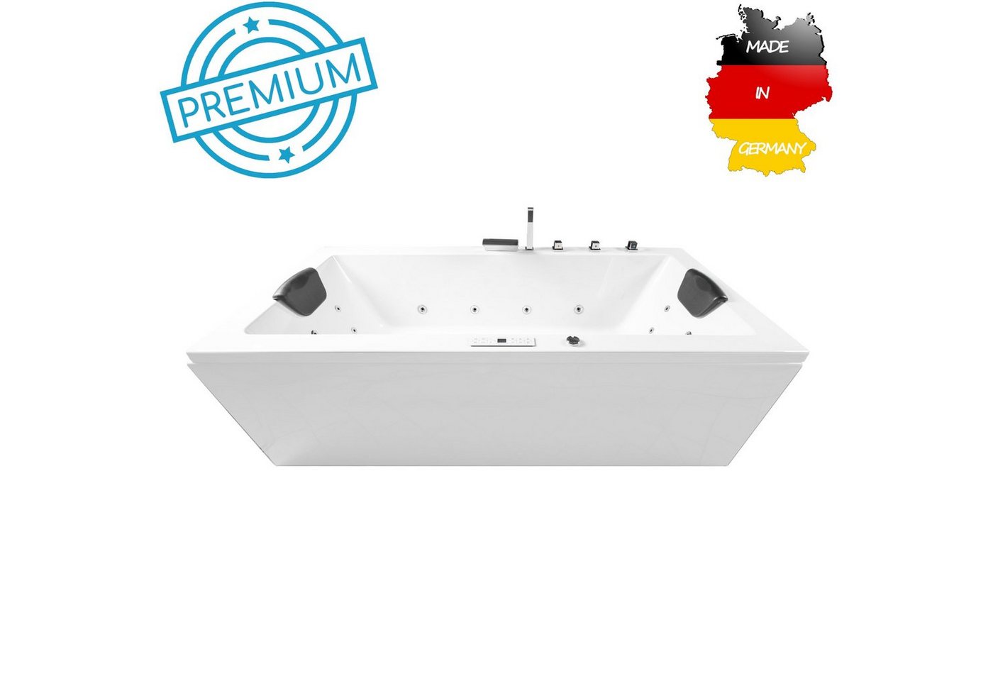 - Mit hochwertigem Sanitäracryl und deutscher Qualitätsmarke für Kleinteile ist diese Whirlpool-Badewanne langlebig und von höchster Qualität.