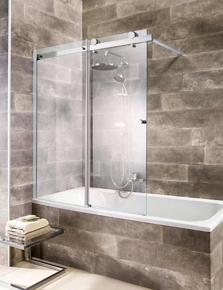 welltime Badewannenaufsatz MauritiusDuschwand aus 6 mm Einscheibensicherheitsglas mit Schiebetür und spritzschützender Wand, 1-teilig