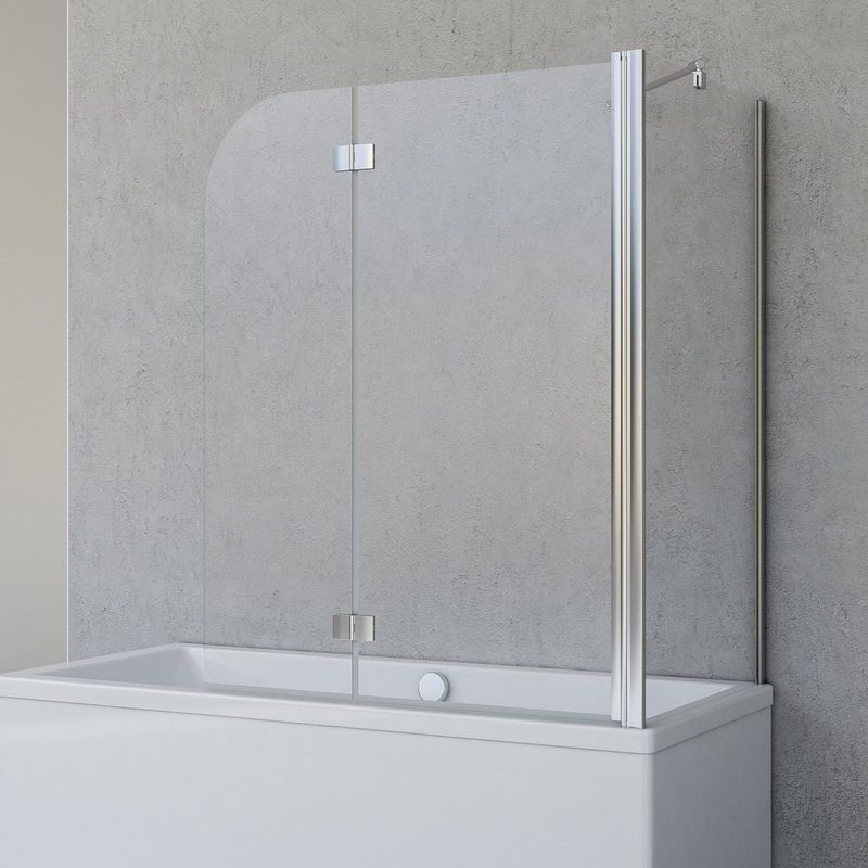 Duschabtrennung für Badewanne Angle2-teilig mit Seitenwand, Profilfarbe Chromoptik, 5 mm Sicherheitglas (ESG) Klar hell, Faltwand: 112 x 142 cm,