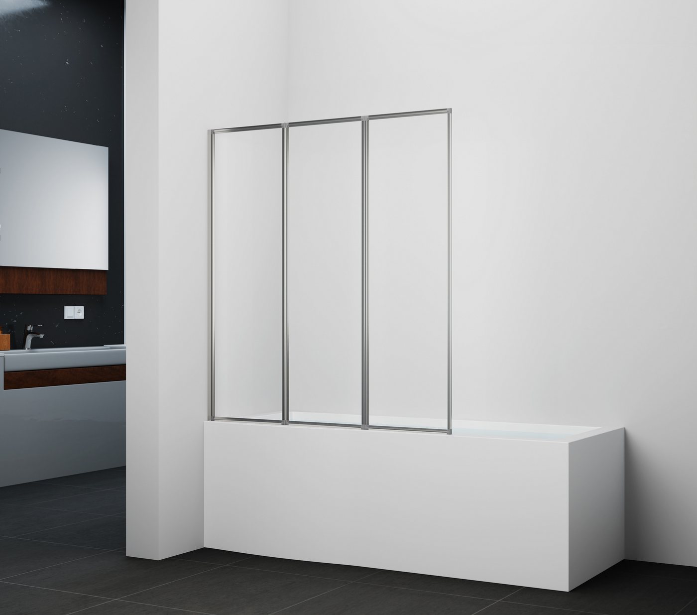 Marwell Badewannenfaltwand Moon3-teilig und faltbar, Einscheibensicherheitsglas, weiß