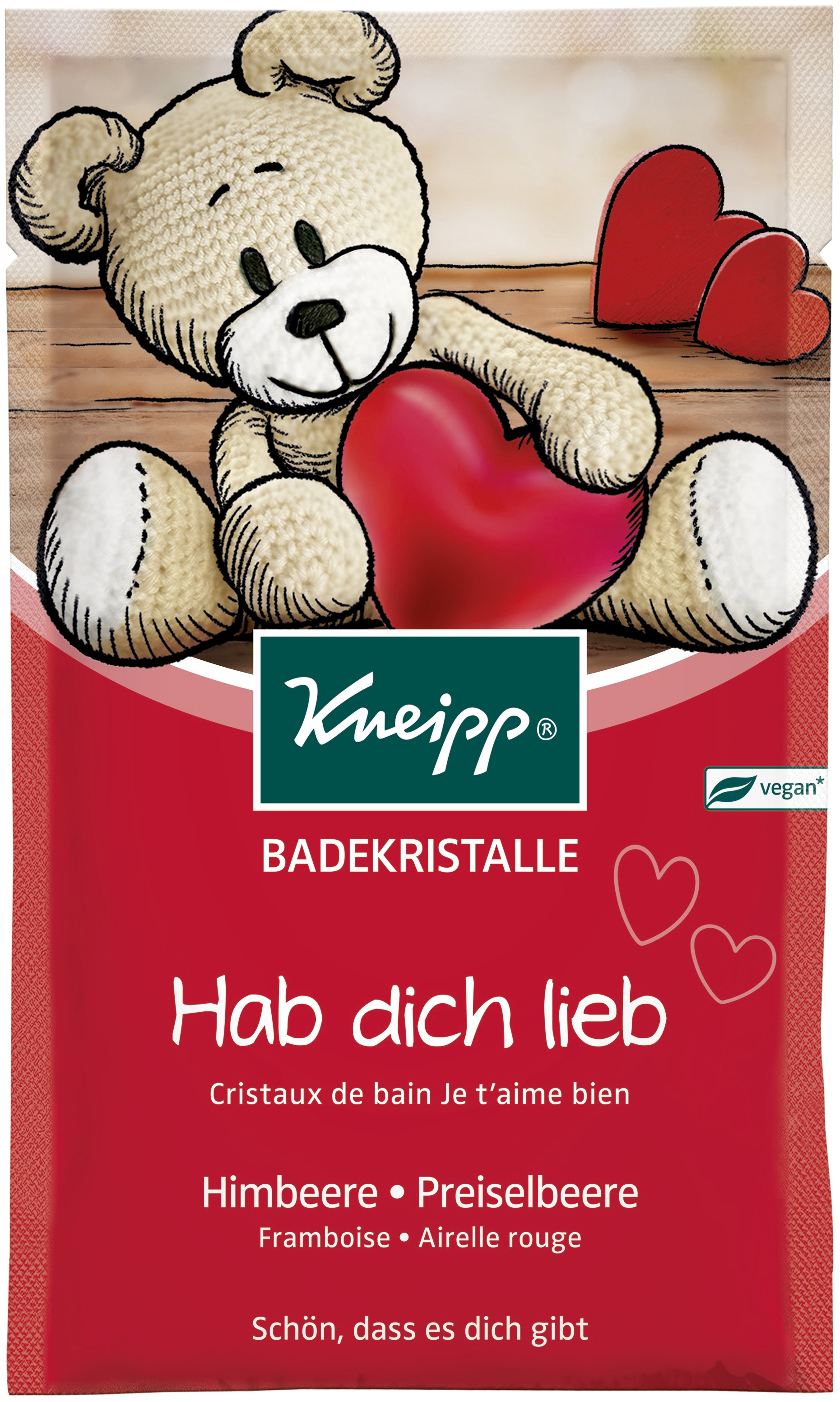 - Die Badekristalle Hab Dich lieb von Kneipp enthalten pflegendes Preiselbeeröl und hochwertigen Himbeerextrakt.