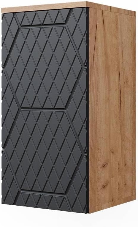 Der Vicco 'Irma' Hängeschrank ist die ideale Lösung, um Ordnung in Ihrem Badezimmer zu schaffen. Mit seinen zwei geschlossenen Fächern bietet er ausreichend Stauraum für Ihre Badutensilien. Das moderne Design in Anthrazit und Goldkraft-Eiche fügt sich harmonisch in jede Badezimmereinrichtung ein. Der Schrank ist aus melaminharzbeschichteter Spanplatte gefertigt und überzeugt durch seine pflegeleichte Oberfläche. **Highlights** - Innovatives Design für ein modernes Badezimmer - Zwei geschlossene Fächer für optimalen Stauraum - Pflegeleichte melaminharzbeschichtete Oberfläche - Teil der Kollektion Irma für ein einheitliches Erscheinungsbild - Leichtes Gewicht von 6,41 kg für einfache Montage **Produkteigenschaften** - Maße (BxHxT): 30 x 59 x 24 cm - Material: Spanplatte, 16 mm - Artikelgewicht: 6,41 kg - Artikelgewicht inkl. Verpackung: 7,4 kg **Lieferumfang** - Hängeschrank - Montageanleitung - Montagematerial