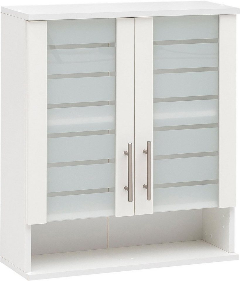 Der Schildmeyer Hängeschrank Nikosia mit einer Breite von 60 cm kombiniert modernes Design mit praktischer Funktionalität. Die hochwertigen MDF-Fronten und satinierten Glastüren schaffen ein stilvolles Ambiente in Ihrem Badezimmer. Ausgestattet mit eleganten Metallgriffen und einem herausnehmbaren Einlegeboden, bietet dieser Schrank ausreichend Platz für Ihre Wellness-Accessoires und Kosmetika. Das offene Fach ermöglicht zusätzliche Ablagefläche oder dekorative Akzente. **Highlights** - Breite von 60 cm für platzsparende Aufstellung - Satinierte Glastüren für ein modernes Ambiente - Hochwertige MDF-Fronten für Langlebigkeit - Herausnehmbarer Einlegeboden für flexible Nutzung - Offenes Fach für zusätzliche Ablage oder Dekoration **Produkteigenschaften** - Material: MDF - Türen mit satinierten Glasaussparungen - Metallgriffe für einen eleganten Look