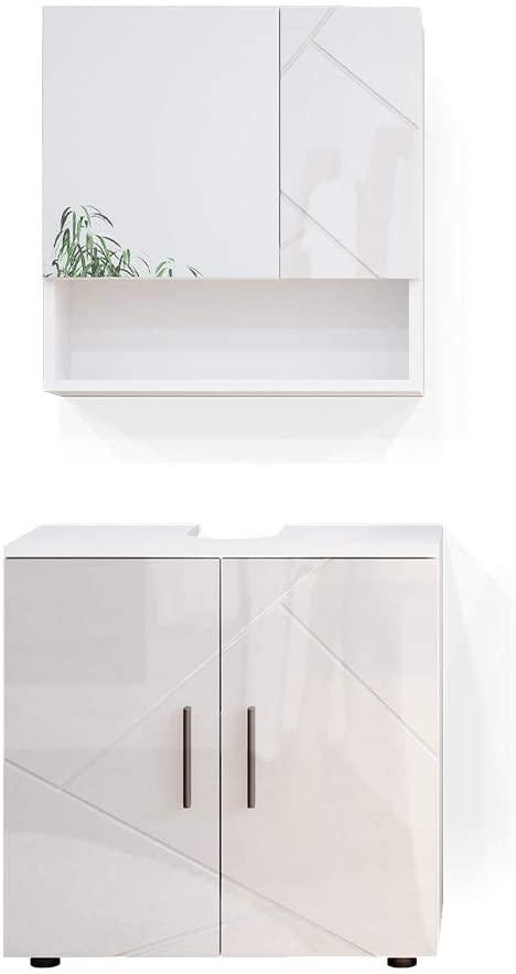| Name | Badmöbel-Set Irma Weiß Hochglanz 2 Teile, Unterschrank 60 cm Vicco |