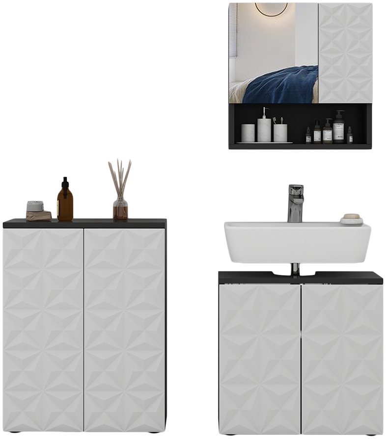 | Set-Bestandteile | 1 Badschrank, 1 Waschbeckenunterschrank, 1 Spiegelschrank |