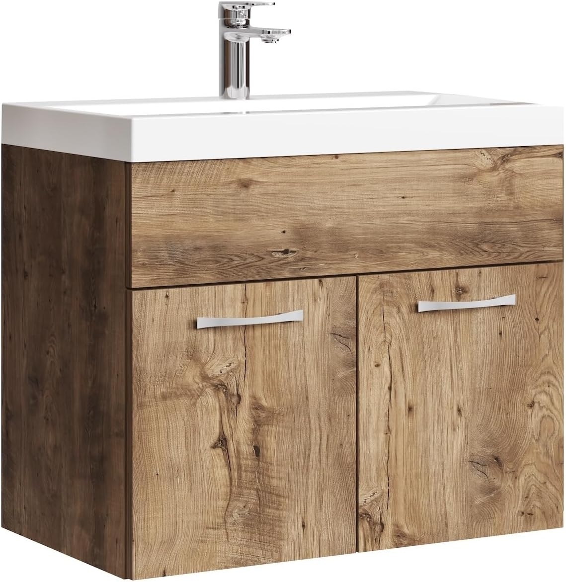 in Badmöbel SetsBadplaats B. V. Badezimmer Badmöbel Set Montreal 01 60cm Waschbecken Braun Eiche - Unterschrank Waschtisch Möbel