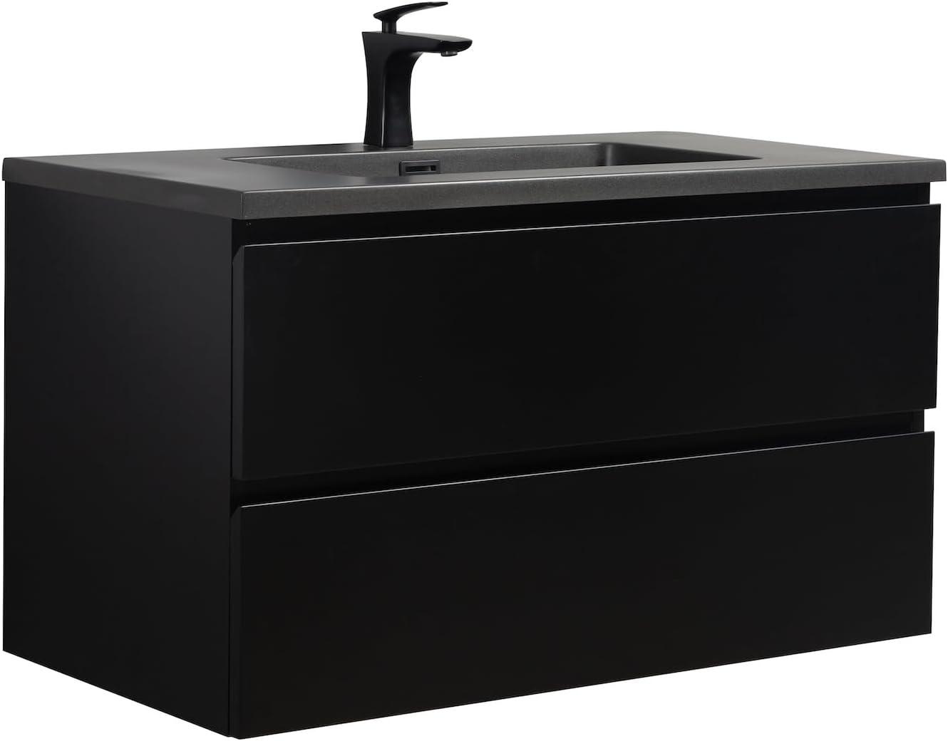 | Name | Badezimmer Badmöbel Set Angela 90 cm - Schwarzes Waschbecken - Matt Schwarz - Unterschrank Schrank Waschbecken Waschtisch |