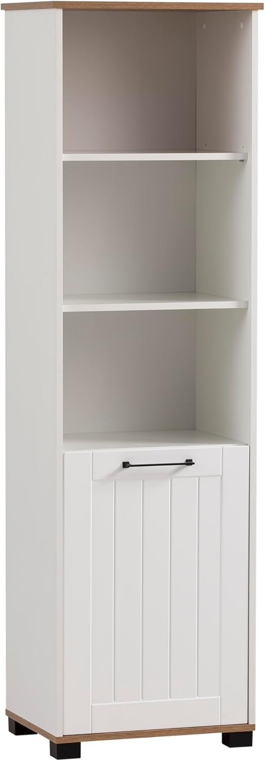 in BadschränkeSchildmeyer HochschrankHolzwerkstoff, matt weiß/Eiche Landhaus Dekor, 52,3 x 41 x 177,4 cm
