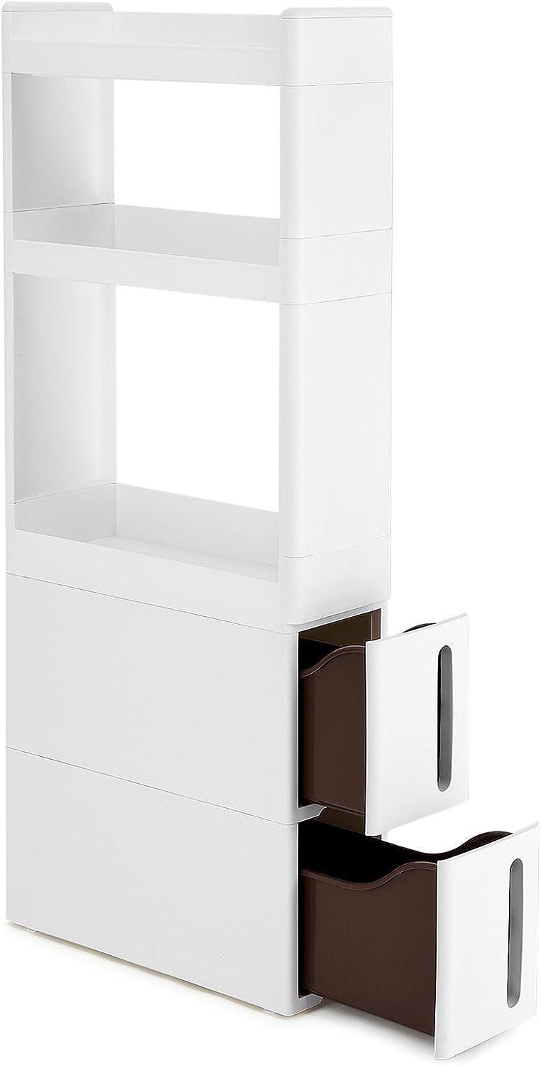 Der SONGMICS Nischenwagen in Weiß ist die perfekte Lösung für begrenzte Räume. Mit seinen kompakten Abmessungen von 17 x 45 x 106,5 cm bietet er viel Stauraum durch 3 Ablagefächer und 2 Schubladen. Die unterschiedlichen Höhen der Ablagefächer und die Luftschlitze am Boden sorgen für Vielseitigkeit. Dank der 4 Rollen lässt sich der Wagen mühelos bewegen. Hergestellt aus robustem PP-Kunststoff, ist er pflegeleicht und einfach zu montieren. **Highlights** - Viel Stauraum auf kleinem Raum - Unterschiedlich hohe Ablagefächer für verschiedene Gegenstände - Leicht zu bewegen dank 4 Rollen - Robustes und pflegeleichtes Material - Einfacher und schneller Aufbau mit Stecksystem **Produkteigenschaften** - Maße: 17 x 45 x 106,5 cm (B x T x H) - 3 Ablagefächer und 2 Schubladen mit Stopper und Griff - Material: PP-Kunststoff - Mit Luftschlitzen am Boden - Inklusive 4 Rollen für einfache Handhabung