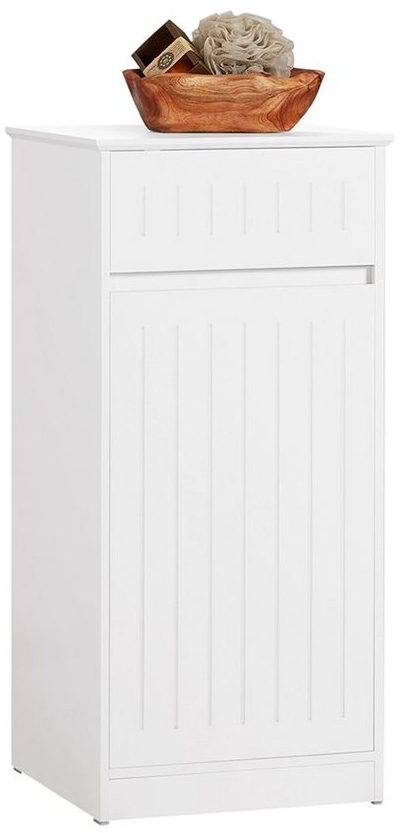 Praktischer Wäscheschrank BZR110 in Weiß aus hochwertigem MDF (E1) bietet eine feuchtigkeitsbeständige und langlebige Lösung für Ihr Badezimmer. Mit den Maßen 40 x 86 x 39 cm und einem Gewicht von 16,8 kg ist er ideal für die Organisation Ihrer schmutzigen Wäsche. Der Wäschesammler mit versteckter Aufbewahrung sorgt für Ordnung, während die Kippsicherung zusätzliche Sicherheit bietet. **Highlights** - Feuchtigkeitsbeständig und langlebig - Praktische Wäscheorganisation mit verstecktem Wäschekorb - Kippschutz für zusätzliche Sicherheit - Teil eines modularen Badmöbel-Sets - Einfache Montage mit detaillierter Anleitung **Produkteigenschaften** - Farbe: Weiß - Material: MDF (E1) - Produktmaße: BHT ca. 40 x 86 x 39 cm - Paketmaße: BHT ca. 89 x 45 x 13 cm - Gewicht: 16,8 kg - Belastbarkeit: bis 25 kg **Lieferumfang** - 1 x Wäscheschrank - 1 x Zubehörbeutel - 1 x Anleitung