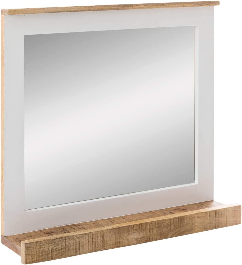 Ein Spiegel, der Gegensätze vereint: Holzwärme trifft auf Metallkälte. Der Bad Spiegel Pune besticht durch massive Korpusse aus warmem Mangoholz, kombiniert mit glatten Oberflächen aus Metall und Stahlblech. Mit einem rustikalen Design und einer hochwertigen Verarbeitung ist dieser Spiegel ideal für Ihr Badezimmer oder Wohnraum. **Highlights** - Kombination aus Holzwärme und Metallkälte - Massive Korpusse aus Mangoholz - Glatte Oberflächen aus Metall und Stahlblech - Handwerkskunst für Badezimmer und Wohnraum **Produkteigenschaften** - Materialien: Mangoholz, Metall, Stahlblech - Maße (BxHxT): 70 x 76 x 15 cm - Klassisches Design mit modernem Touch - Geeignet für Badezimmer und Wohnraum