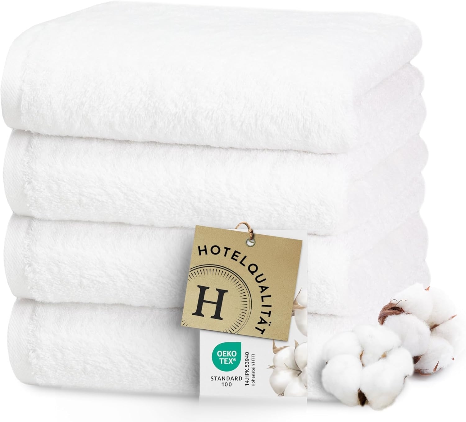 ZOLLNER Handtücher im praktischen 4er Pack aus 100% Baumwolle bieten Ihnen ein luxuriöses Erlebnis nach dem Baden oder Duschen. Mit einer Größe von 50x100 cm sind die Handtücher besonders saugfähig und angenehm auf der Haut. Das Materialgewicht von ca. 650 g/qm sorgt für Langlebigkeit und Weichheit. Die Handtücher sind bei 95°C waschbar und trocknergeeignet, was höchste Hygiene garantiert. **Highlights** - 100% Baumwolle für hohe Saugfähigkeit - Größe: 50x100 cm für vielseitigen Einsatz - Materialgewicht von ca. 650 g/qm für besondere Weichheit - Waschbar bei 95°C für optimale Hygiene - Trocknergeeignet für schnellen Wiedereinsatz **Produkteigenschaften** - 4er Pack für den praktischen Gebrauch - Keine Bordüre, verhindert Zusammenziehen beim Waschen - Stückfärbung in elegantem Weiß für zeitlose Schönheit - Ideal für den Einsatz in Hotels, Restaurants und Kliniken