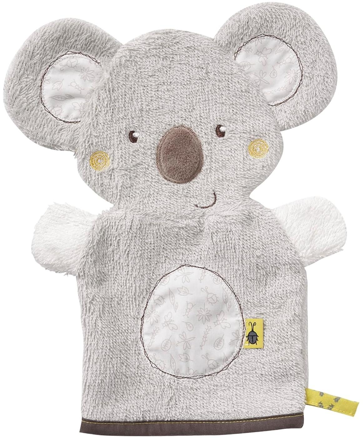 Der Fehn Australia Waschhandschuh Koala ist der perfekte Begleiter für die tägliche Pflege Ihres Babys. Mit einer Größe von ca. 27 cm und aus kuschelweichem Frottee gefertigt, sorgt er für sanften Badespaß. Der Waschhandschuh kann nicht nur zum Baden, sondern auch als Handpuppe verwendet werden. Er ist bis 60 °C waschbar und eignet sich für Babys ab 0 Monaten. **Highlights** - Niedliches Koala-Design für glückliches Strahlen in Babys Gesicht - Vielseitig verwendbar als Waschhandschuh und Handpuppe - Kuschelweiches Material für sanfte Reinigung der Babyhaut - Waschbar bis 60 °C für einfache Pflege - Größe: ca. 27 cm **Produkteigenschaften** - Obermaterial: Frottee - Paspel: Stoff - Applikation: Velours - Art.Nr: 064186 **Lieferumfang** - 1 x Waschhandschuh Koala aus der Kollektion Australia - Maße: 27 cm - Ausschluss: Weitere Produkte sind nicht enthalten