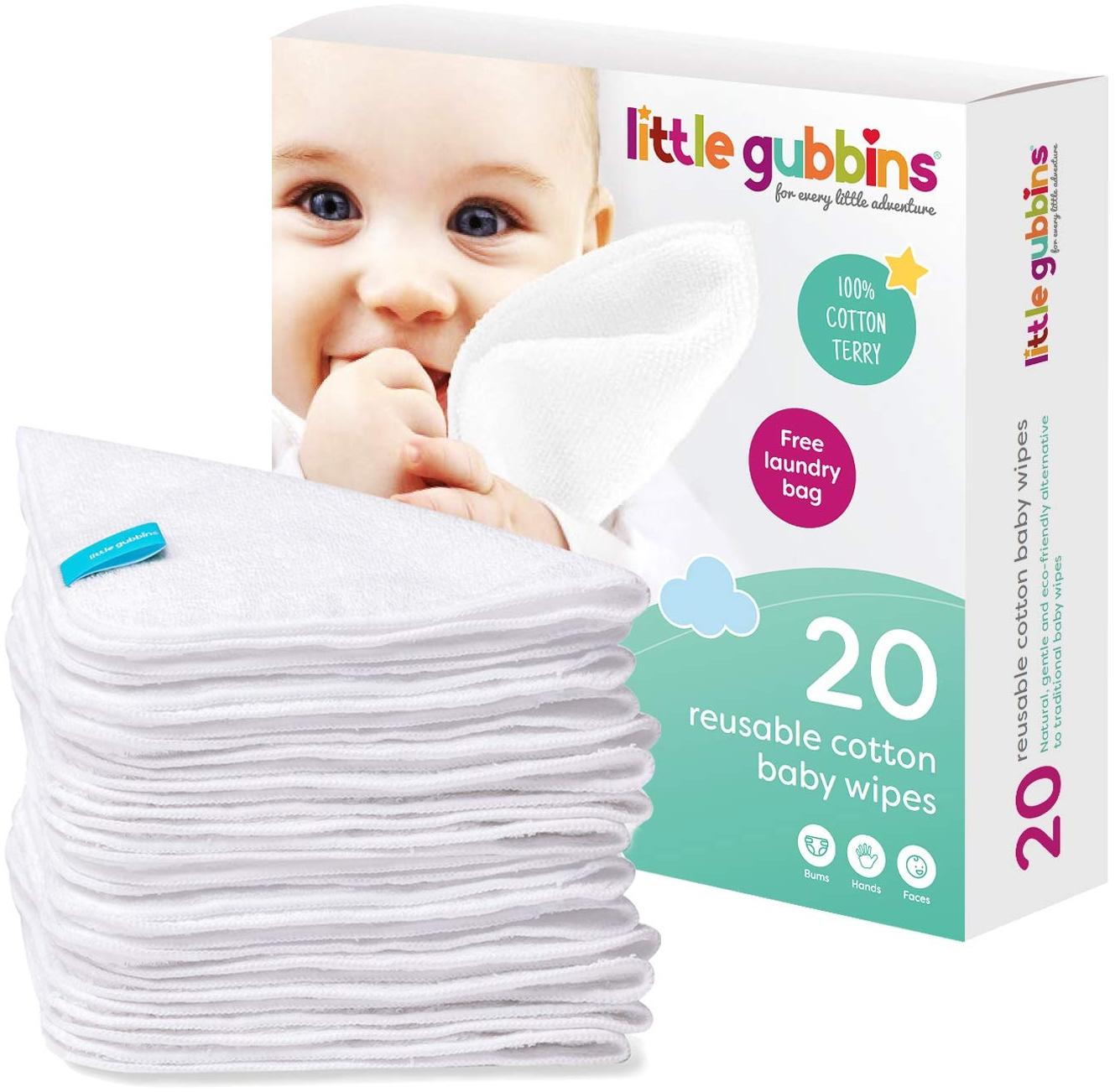 | Name | Little Gubbins 20 Baumwoll-Frottee-Baby-Tücher | Packung mit 20x20 cm wiederverwendbaren, weichen weißen Frotteetüchern | ideal für schmutzige Po |