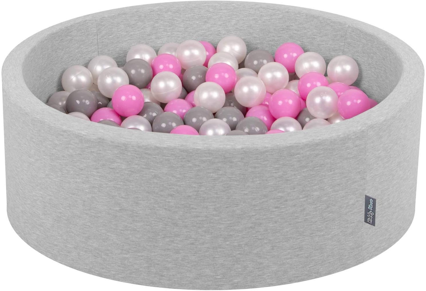 KiddyMoon Bällebad 90X30cm 200 Bälle ∅ 7Cm Bällepool Mit Bunten Bällen Für Babys Kinder Rund, Hellgrau:Perle-Grau-Pink