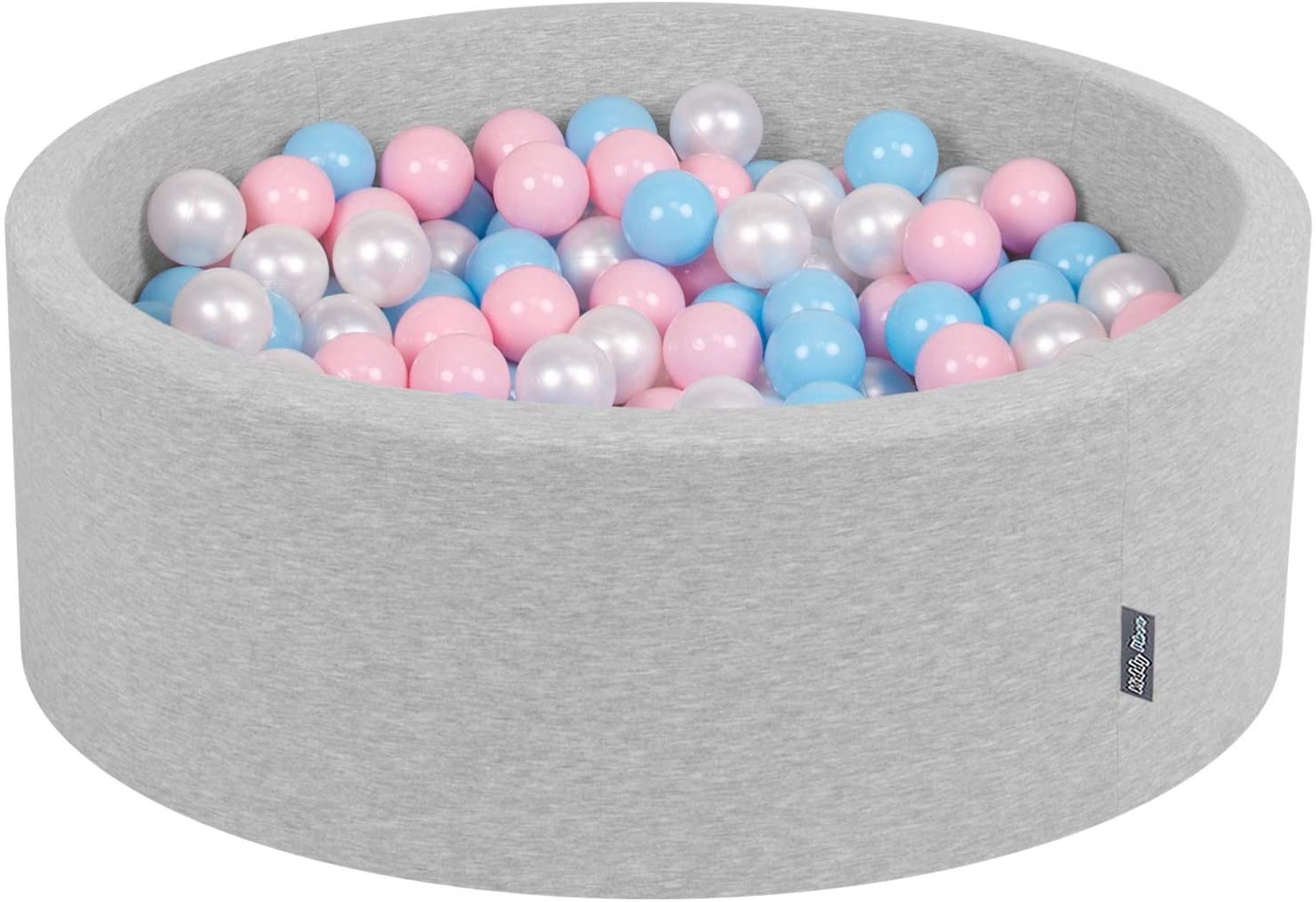 KiddyMoon Bällebad 90X30cm 300 Bälle ∅ 7Cm Bällepool Mit Bunten Bällen Für Babys Kinder Rund, Hellgrau:Baby Blau/Rosa/Perle