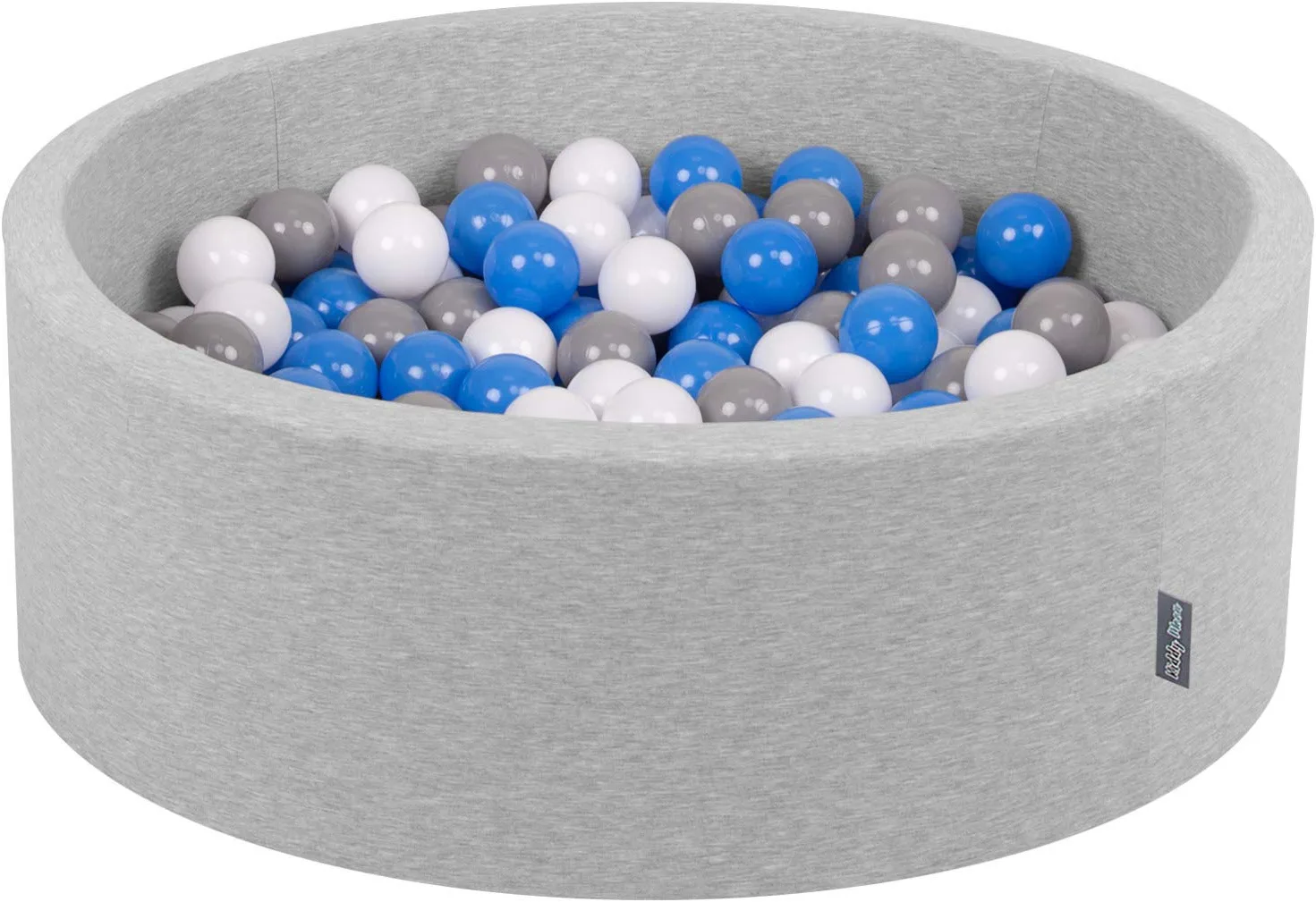 KiddyMoon Bällebad 90X30cm 200 Bälle ∅ 7Cm Bällepool Mit Bunten Bällen Für Babys Kinder Rund, Hellgrau:Grau-Weiß-Blau