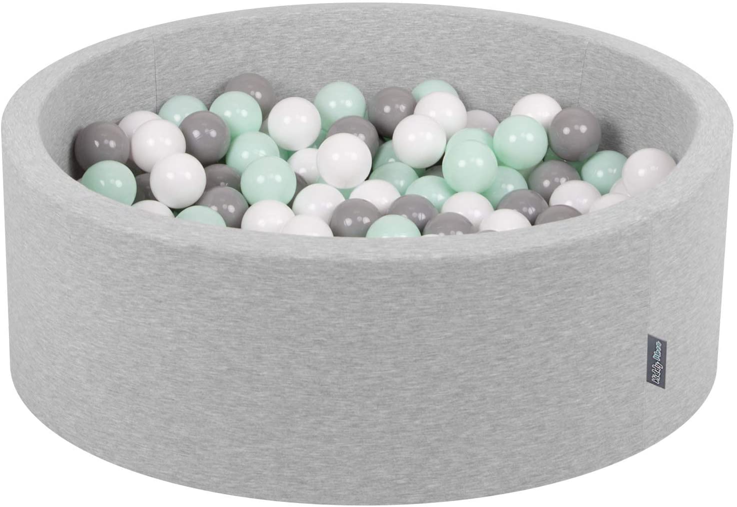 in BällebäderKiddyMoon Bällebad 90X30cm 300 Bälle ∅ 7Cm Bällepool Mit Bunten Bällen Für Babys Kinder Rund, Hellgrau:Weiß/Grau/Minze