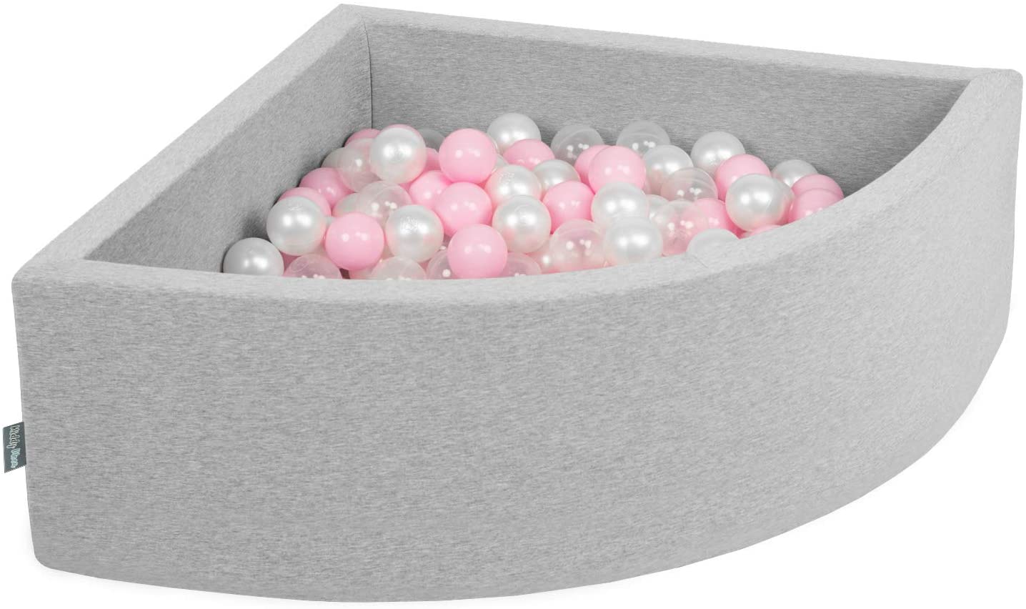 KiddyMoon Bällebad 90X30cm 200 Bälle Bällepool Mit Bällen ∅ 7Cm Für Babys Kinder Viertel Eckig, Hellgrau:Rosa/Perle/Transparent