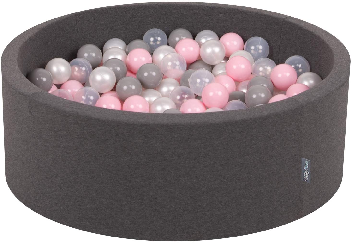 KiddyMoon Bällebad 90X30cm 200 Bälle ∅ 7Cm Bällepool Mit Bunten Bällen Für Babys Kinder Rund, Dunkelgrau:Perle/Grau/Transparent/Rosa
