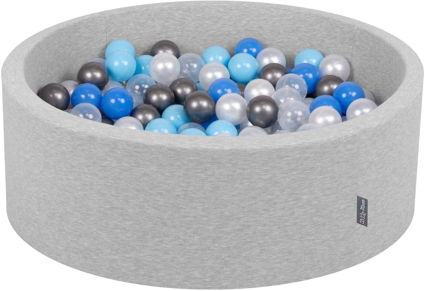 KiddyMoon Bällebad 90X30cm 200 Bälle ∅ 7Cm Bällepool Mit Bunten Bällen Für Babys Kinder Rund, Hellgrau:Perle-Blau-Baby Blau-Transparent-Silbern