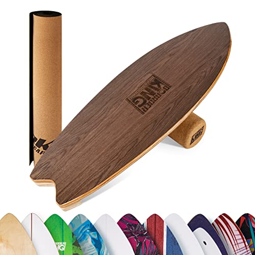 BoarderKING Indoorboard Wave - Balance Board für Indoor-Surfen und SkatenGleichgewichtsboard für NeuroMuscular Response Training, inkl. Schutzmatte, Walnuss