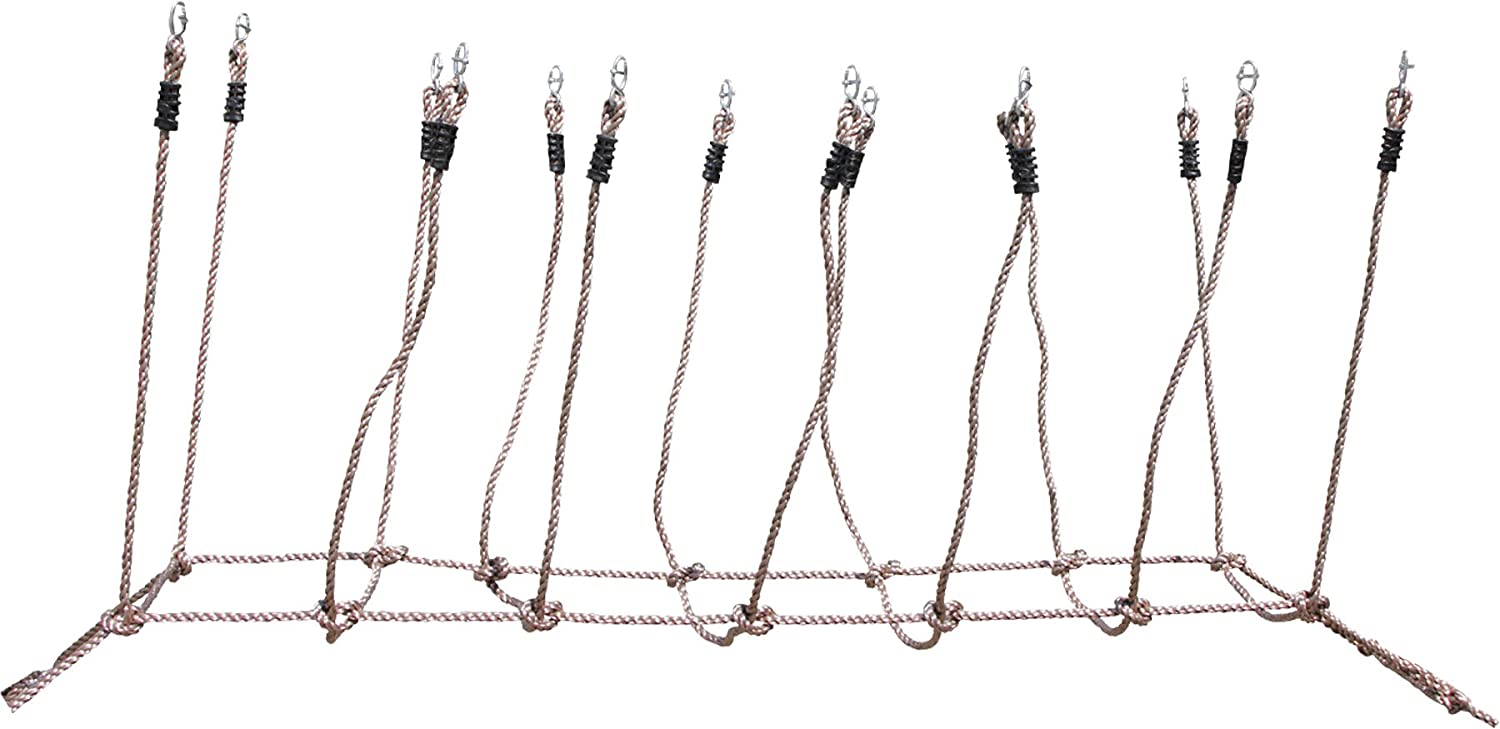 - Der obere Teil der Seilbrücke kann an einem Seil oder einer Metallleine befestigt werden (nicht im Lieferumfang enthalten).
