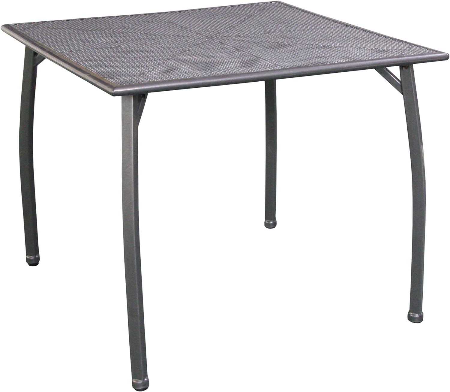 | Beschreibung | Der greemotion Gartentisch Toulouse ist ein eckiger Tisch aus kunststoffummanteltem Stahl in eisengrau. Mit ca. 90 x 90 x 74 cm bietet er Platz für 2-4 Personen. Die Niveauregulierung sorgt für einen sicheren Stand auf unebenem Boden. Kompakt und ideal für Garten, Veranda oder Balkon. **Highlights** - Niveauregulierung für sicheren Stand - Kompakte Größe für 2-4 Personen - Stabile Konstruktion aus kunststoffummanteltem Stahl - Eckige Tischplatte in Gitteroptik - Geschwungene Beine in Eisengrau **Produkteigenschaften** - Maße: ca. 90 x 90 x 74 cm - Gewicht: ca. 8 kg - Tischplatte und Beine aus kunststoffummanteltem Stahl - Farbe: eisengrau - Niveauregulierung zur Bodenanpassung **Lieferumfang** - 1 x Tisch Toulouse (Tischplatte und Beine) - 1 x Montagematerial |