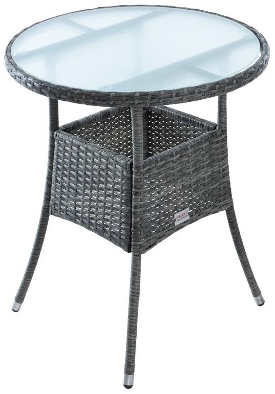 Dieser moderne Beistelltisch aus Polyrattan in Anthrazit ist die perfekte Wahl für Ihren Garten oder Wohnraum. Mit einem eleganten Rattangeflecht und einer satinierten Milchglasplatte vereint er Stil und Funktionalität. Der Tisch ist UV-beständig, pflegeleicht und lässt sich schnell aufbauen, was ihn zu einer idealen Ergänzung für Ihre Polyrattan Gartenstühle macht. **Highlights** - Modernes Design mit Rattangeflecht und Milchglasplatte - UV-beständig und pflegeleicht - Schneller Aufbau - Ideal für Garten oder Wohnraum - Passend zu verschiedenen Polyrattan Gartenstühlen **Produkteigenschaften** - Größe (LxBxH): ca. 48 x 44 x 74 cm - Durchmesser Tischplatte: ca. 60 cm - Material Gestell: Stahl - Material Tischplatte: Sicherheitsglas (satiniertes Milchglas) - Stärke der Tischplatte: ca. 0,5 cm - Farbe: Anthrazit-Grau