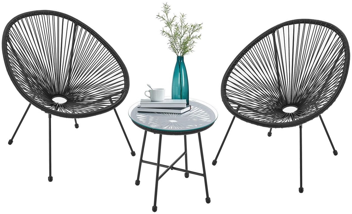 | Name | Juskys 'Ostana' Balkonmöbel Set, 3-teilig, Tisch + 2x Sessel, Polyrattan, Schwarz |