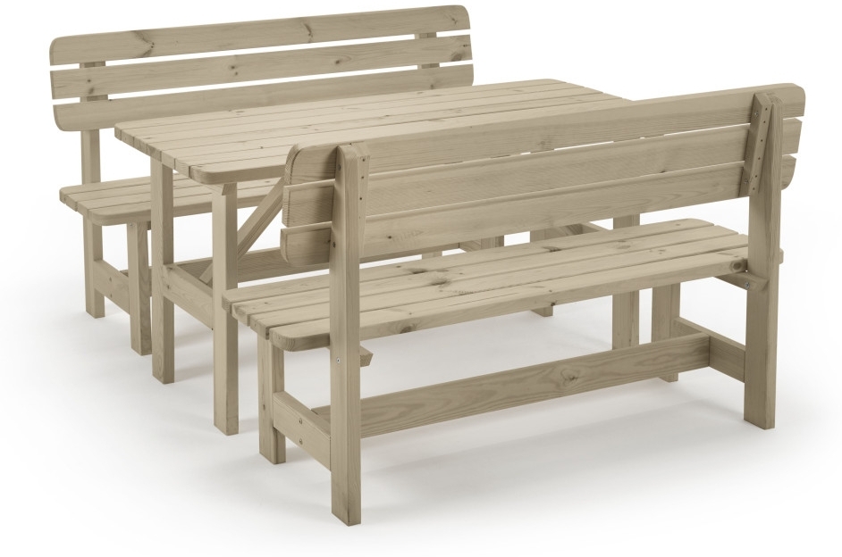 | Lieferumfang | 1x Tisch, 2x Bank (ohne Polster) |