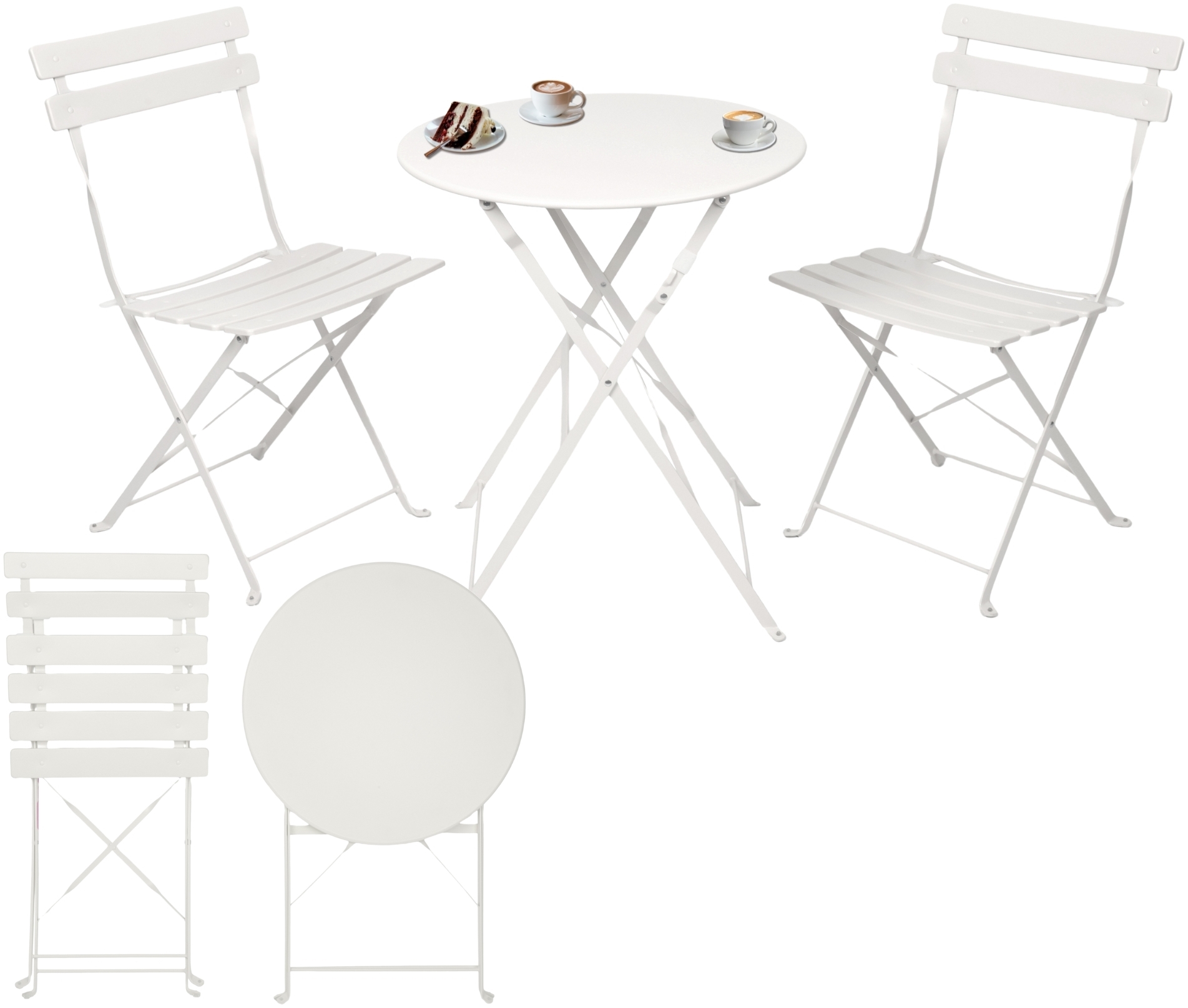 | Name | Albatros Bistroset 3-teilig Weiß – Bistrotisch mit 2 Stühlen – klappbare Stühle und Tisch aus robustem Metall – optimal als Balkonmöbel Set oder Gartenmöbel in modernem Design |