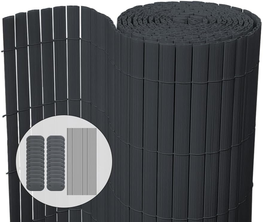 VOUNOT PVC Sichtschutzmatte 80x300 cm bietet Ihnen einen effektiven Sichtschutz für Garten, Balkon und Terrasse. Mit verstärkten Rohren und einer strukturierten Oberfläche gewährleistet sie Stabilität und Kratzfestigkeit. Der undurchsichtige PVC-Sichtschutz ermöglicht eine gute Luftzirkulation und schützt vor neugierigen Blicken. Die Installation ist einfach und das Material ist langlebig sowie pflegeleicht. **Highlights** - Verstärkte Rohre für erhöhte Stabilität - Strukturierte Oberfläche für Kratzfestigkeit - Undurchsichtiger Sichtschutz mit kleinen Lücken für Luftzirkulation - Einfache Installation mit 26 Befestigungsmaterialien - Langlebig, UV-beständig und pflegeleicht **Produkteigenschaften** - Maße (HxL): 80x300 cm - Material: PVC - Farbe: Grau - Wetterfest und wasserdicht **Lieferumfang** - 1 x PVC Sichtschutzmatte - 26 x Befestigungsmaterial - Ausschluss von optionalem Zubehör