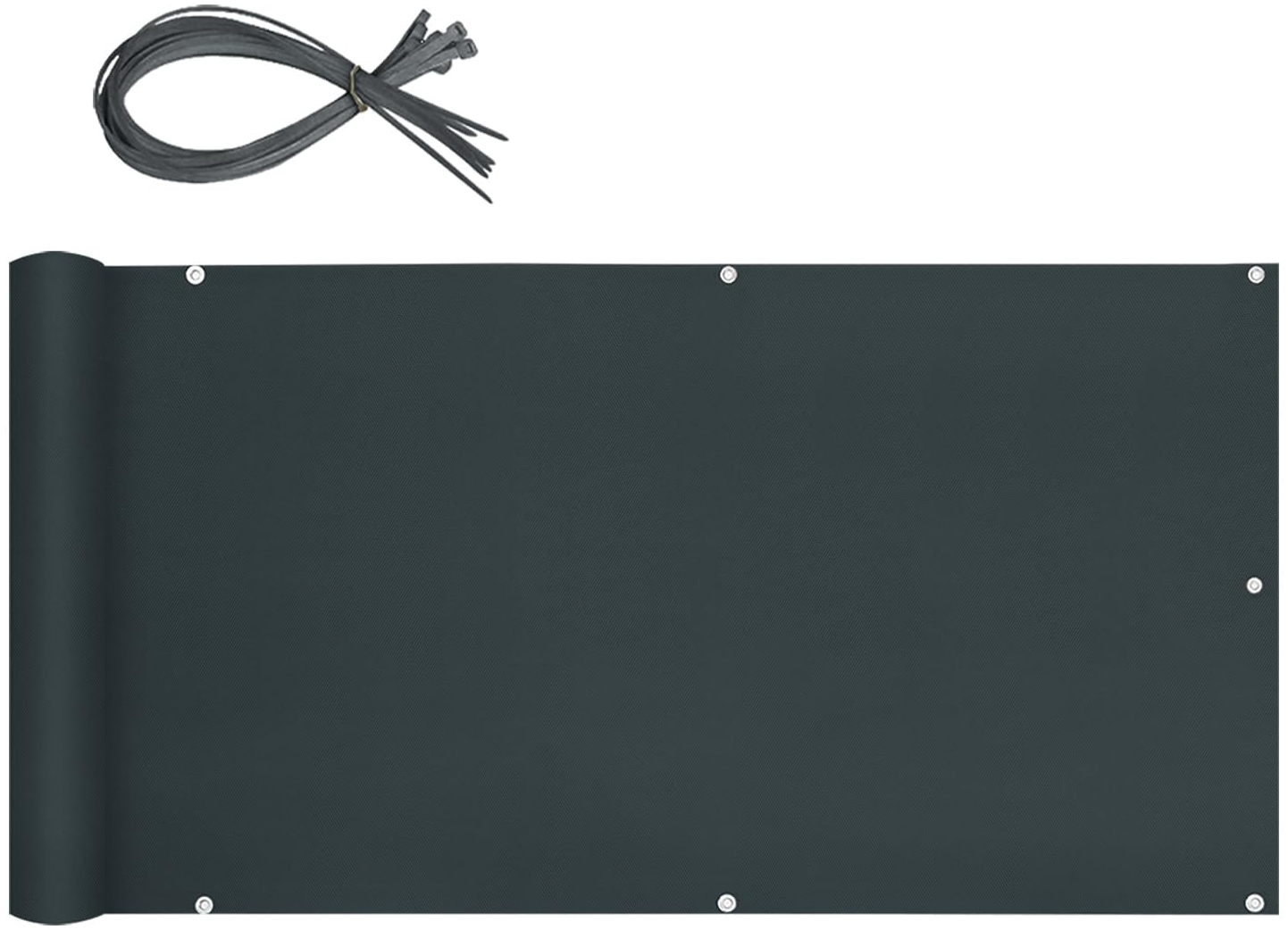 Robuster Balkon-Sichtschutz aus hochdichtem Oxford-Gewebe mit wasserdichter PU-Beschichtung. Der Sichtschutz ist blickdicht, wasser- und winddicht sowie UV-beständig. Mit rostfreien, reißfesten Ösen und einer maximalen Zuglast der Kabelbinder von 22 kg ist eine einfache Installation gewährleistet. Ideal für Balkongärten, Terrassen und als Dekoration für Swimmingpools. **Highlights** - Robustes Oxford-Gewebe mit PU-Beschichtung für hohe Wetterbeständigkeit - Rostfreie und reißfeste Ösen für zusätzliche Stabilität - Einfache Installation mit Kabelbindern für sicheren Halt - Vielseitig einsetzbar als Sicht- und Sonnenschutz - Individuell zuschneidbar für die passende Länge **Produkteigenschaften** - Maße: 90x700 cm - Farbe: Anthrazit - Ösenabstand: 50 cm - Maximale Zuglast der Kabelbinder: 22 kg - Material der Kabelbinder: reißfestes Polyester - Nicht maschinenwaschbar, kann gebügelt werden