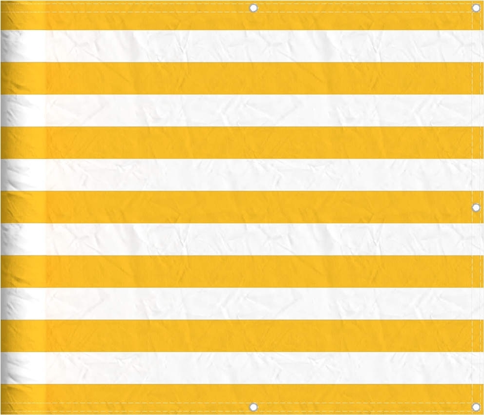 Mit dem vidaXL Balkon-Sichtschutz in Gelb und Weiß (90 x 1000 cm) genießen Sie beim Sonnenbaden Ihre Privatsphäre. Hergestellt aus 100 % Polyester-Oxford mit PU-Beschichtung, ist dieser Sichtschutz wind-, staub-, wasserfest und UV-beständig. Die einfache Montage erfolgt durch Aluminiumösen und ein mitgeliefertes Seil. Ideal für Balkone, Terrassen, Schwimmbäder, Gärten und Höfe. **Highlights** - Wasserfest und UV-beständig: Schützt vor Witterungseinflüssen und sorgt für Langlebigkeit. - Einfache Montage: Aluminiumösen und Seil ermöglichen eine mühelose Befestigung. - Pflegeleicht: Der Sichtschutz ist einfach zu reinigen und zu warten. - Vielseitig einsetzbar: Ideal für verschiedene Außenbereiche wie Balkone und Gärten. - Langlebig: Robuste Materialien garantieren eine lange Lebensdauer. **Produkteigenschaften** - Farbe: Gelb und Weiß - Material: 100 % Polyester-Oxford mit PU-Beschichtung - Größe: 90 x 1000 cm (B x L) - Länge des Seils: 24 m - Wind-, staub-, wasserfest und UV-beständig - Mit Aluminium-Ösen **Lieferumfang** - Balkon-Sichtschutz - Seil (24 m) - Aluminium-Ösen
