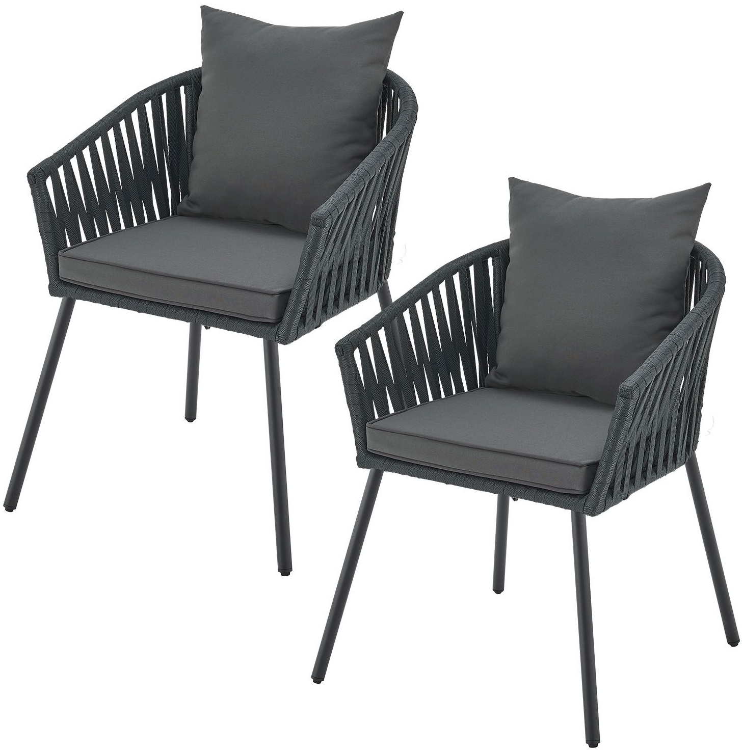 Juskys Rope Stühle 2er Set - Gartenstühle mit Seilgeflecht & Polster - wetterfester & bis 160 kg belastbar - Stahl mit Pulverbeschichtung - Dunkelgrau